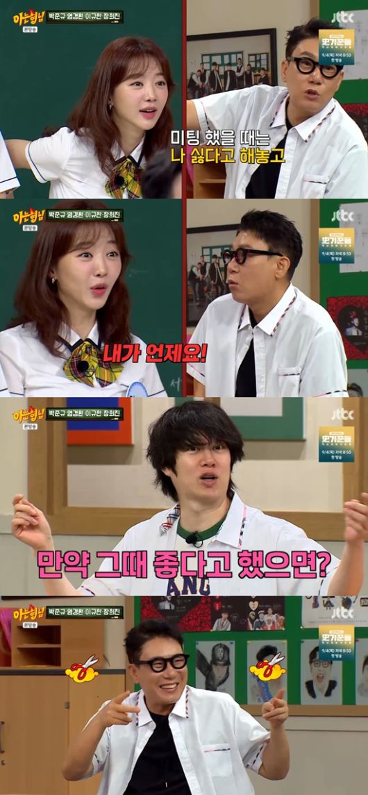 23일 방송된 JTBC '아는 형님'에 배우 박준규, 개그맨 염경환, 그리고 배우 이규한과 장희진이 게스트로 출연했다.