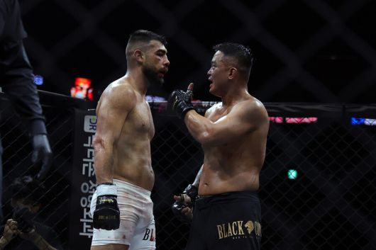 '화이트베어' 최원준은 브라질 강자 '타노스' 에두아르도 가르봉을 3라운드 종료 2-1 판정으로 이긴 뒤 은퇴를 선언했다. 1라운드 타노스의 화력에 밀리는 듯했지만, 주무기인 복싱을 활용해 전세를 뒤집었다. 타노스가 클린치로 갈 수 밖에 없을 만큼 타격전에선 최원준의 기술과 힘이 압도적이었다.