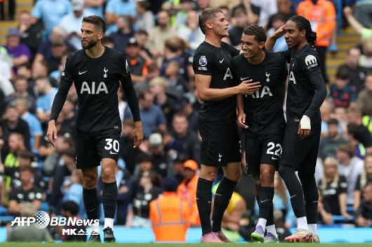 토트넘은 23일(한국시간) 잉글랜드 맨체스터 에티하드 스타디움에서 열린 맨시티와 2025-26 프리미어리그 2라운드에서 2-0 완승을 거뒀다.