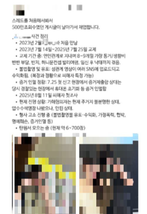 공론화로 피해 사실을 알게 된 추가 피해자. X 캡처 |