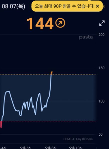 그리고 열흘이 흘렀습니다. 결론부터 말하자면 파스타 앱은 서서히 생활 패턴을 바꾸게 도왔습니다. 기상 후 공복혈당이 얼마인지 체크하는 것이 일상이 되고, 혈당이 치솟는 것을 막기 위해 식사 순서도 바꾸게 됐습니다.