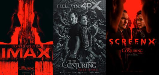 IMAX 포스터에서는 마주 선 워렌 부부와 피로 물든 십자가 이미지가 중심을 이루며, 대형 스크린과 입체적인 사운드의 시너지를 예고했다. 4DX 포스터는 사방에서 뻗어나오는 동상의 손들이 등장해, 실감 나는 모션 효과로 마치 퇴마 현장에 직접 있는 듯한 현장감을 선사할 것으로 기대를 모은다. SCREENX 포스터에서는 이번 작품의 주요 요소인 거울을 활용한 연출이 돋보인다. 좌우 벽면까지 활용하는 3면 스크린은 관객을 공포의 공간 속으로 몰입시킬 예정이다.