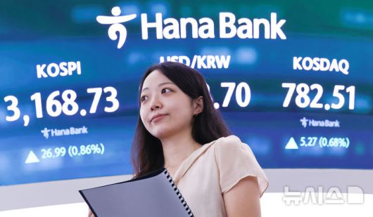 [서울=뉴시스] 최진석 기자 = 코스피가 전 거래일(3141.74)보다 26.99포인트(0.86%) 오른 3168.73에 장을 마친 22일 오후 서울 중구 하나은행 딜링룸 전광판에 지수가 표시되어 있다. 코스닥 지수는 전 거래일(777.24)보다 5.27포인트(0.68%) 상승한 782.51에 마감, 서울 외환시장에서 원·달러 환율은 전 거래일 주간거래 종가(1398.4원)보다 5.2원 내린 1393.2원에 주간 거래를 마감했다. 2025.08.22. myjs@newsis.com |