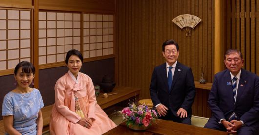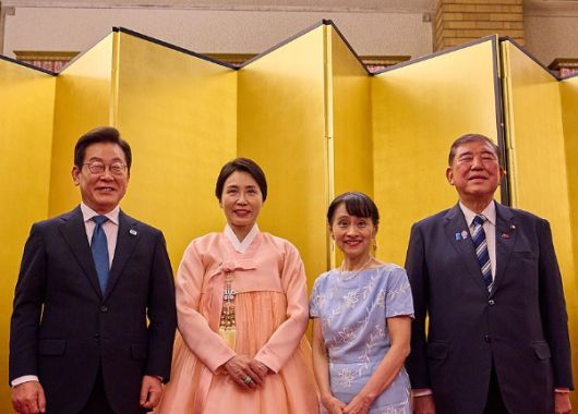 | 이재명 대통령 부부, 이시바 일본 총리 부부와 기념촬영 / 사진=연합뉴스 |