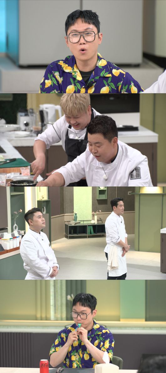 이에 맞서는 샘킴은 "어렸을 때 소주를 4병씩 마셨다", "책으로 배운 것과 몸으로 익힌 것은 다르다"며 팽팽한 기싸움을 이어간다. 한편, 대결이 시작되기 직전 빠니보틀은 갑자기 숙취해소제를 꺼내 먹으며 요리 시식에 대한 진심을 보여줘 현장을 웃음바다로 만든다.