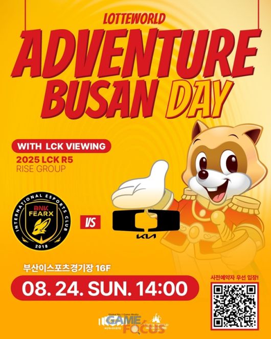 2025년부터 롯데월드 어드벤처 부산과 파트너십을 체결하고 MZ세대 타켓 공동 마케팅을 함께 하고 있는 BNK피어밴드와 롯데월드 어드벤쳐 양사는 24일 LCK 경기(BFX vs DK)를 홈경기장인 부산이스포츠경기장에서 가족 단위 부산 시민 100여명과 함께할 예정이다.