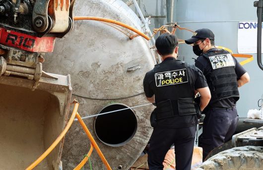 해당 사고는 21일 오후 1시 29분 혼화제 탱크에서 작업자 1명이 쓰러진 뒤 다른 2명이 뒤따라 들어갔다가 모두 참변을 당한 사건입니다.