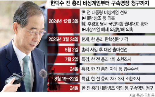 내란특검팀(특별검사 조은석)은 24일 한덕수 전 국무총리에 대해 내란 방조 혐의 등으로 구속영장을 청구했다. 전직 국무총리에게 구속영장이 청구된 것은 헌정 사상 첫 사례다. 특검은 “국무총리는 대통령의 권한남용을 견제할 의무가 있다”며 ‘계엄의 조력자’라는 논리로 한 전 총리의 구속 필요성을 강조했다.
