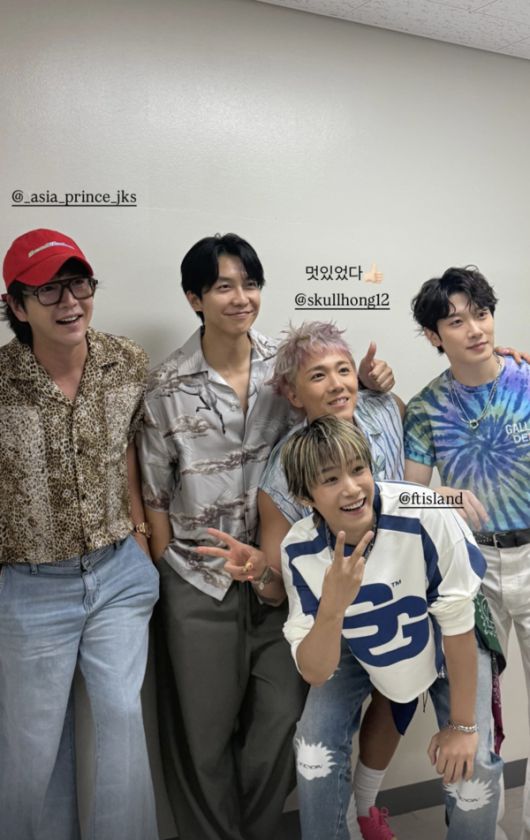 이승기는 23일 자신의 개인 계정에 FT아일랜드 콘서트에 참석한 모습을 공개했다. 사진 속에는 이승기와 장근석, 그리고 FT아일랜드 멤버들이 무대 뒤에서 함께 한 모습. 이승기는 "멋있었다"라는 후기를 남기기도 했다.