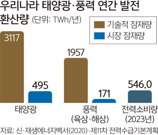 우리나라에서 활용가능한 태양광·풍력 에너지는 지리·기술 요인을 반영한 기술적 잠재량 기준으로 각각 한해 3117TWh(테라와트시), 1957TWh로, 여기에 경제·정책 요인까지 고려한 시장 잠재량은 각각 495TWh, 171TWh 수준으로 평가된다. 시장 잠재량만 봐도 우리나라 연간 전력 소비량(2023년 기준 557TWh)을 훌쩍 뛰어넘는다. 현재 국립기상과학원이 기상자원지도 서비스를 제공 중이나 개개 지역 일사량·풍속의 경우 과거 관측값에 의존하고 있는 데다 실시간 예측 정보 또한 일부 발전단지만 제공할 뿐이다.