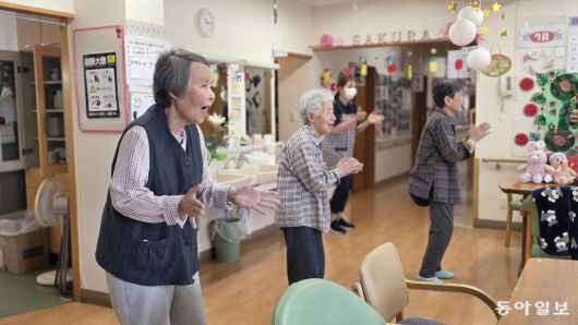 지난달 22일 오전 일본 사이타마현 사이타마시 치매(인지증) 돌봄 시설 ‘사랑의 집 그룹홈’. 아침 식사를 마친 노인들이 20분 넘게 TV 화면의 건강 체조를 따라 하며 땀을 흘리고 있었다. 오리토 씨(84)는 “집에선 혼자였는데, 여기선 가족 같은 친구들과 노래 부르고 춤출 수 있어 행복하다”고 했다.