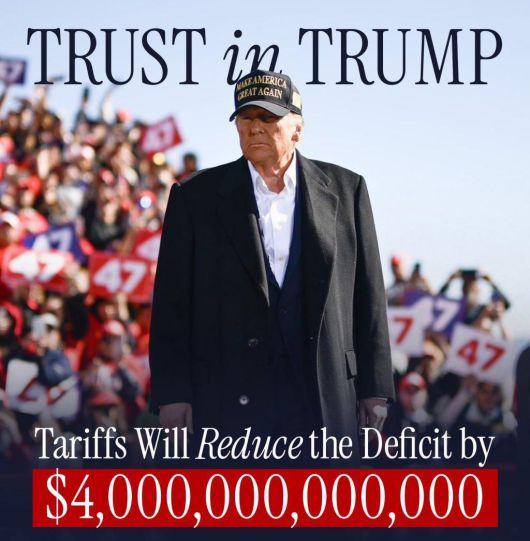 미국 백악관이 23일(현지 시간) ‘X’에 “의회예산국(CBO)은 도널드 트럼프 대통령의 관세 의제가 유지된다면 향후 10년간 미국의 (무역)적자를 최대 4조 달러(약 5560조 원) 줄일 수 있을 것으로 예상한다”는 글과 함께 관련 내용을 담은 이미지를 올렸다. 사진 출처 백악관 ‘X’ |