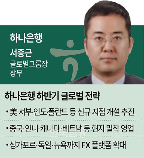 하나은행은 올해 하반기 해외 네트워크 확대에 속도를 낼 계획이다. 미국 서부를 비롯해 빠른 경제성장 수혜가 예상되는 인도와 자동차, 방산, 2차전지 산업을 중심으로 한국기업의 진출이 활발한 폴란드에 지점 형태의 채널 개설을 추진하고 있다.