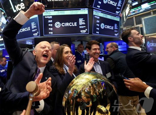 서클 회사 간부들이 지난 6월 개장벨을 치며 환호하고 있다. ⓒ 로이터=뉴스1 ⓒ News1 박형기 기자 |