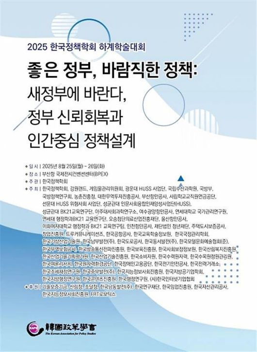 박형준 회장은 “이번 학술대회가 인간 중심의 정책 연구를 통해 정부 신뢰를 회복하고 새로운 정책 패러다임을 모색하는 계기가 되기를 바란다”며 “새정부의 정부 신뢰 회복과 지속 가능한 정책 비전을 제시하는 의미 있는 장이 될 것”이라고 강조했다.