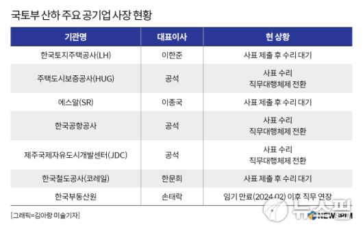 국토부 산하 주요 공기업 사장 현황 [그래픽=김아랑 미술기자] |