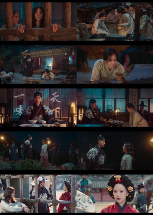 왕의 입맛을 저격한 죄로 오랏줄에 칼까지 찬 채 궁궐로 압송된 연지영의 존재는 궁궐 안에 새로운 파란을 불어왔다. 특히 왕의 총애를 받는 후궁 강목주(강한나 분)는 이헌이 관심을 두고 데려온 연지영에게 살기 가득한 눈빛을 쏘아대 긴장감을 높였다.