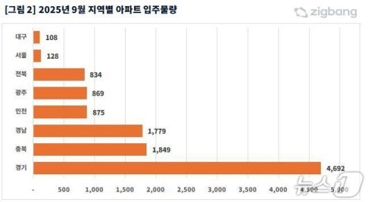 지방에서는 5439가구 입주하며 전월(6894가구)보다 21% 적다. 이는 2022년 1월(3491가구) 이후 가장 적은 입주 물량이다.