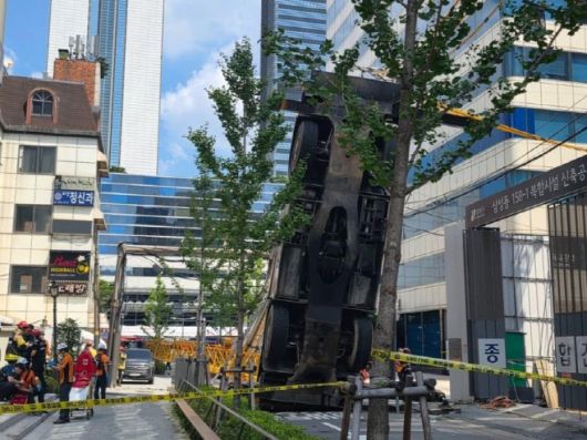강남 코엑스 인근서 60t 크레인 넘어져… 인근 한때 정전