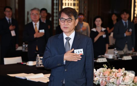 (서울=뉴스1) 구윤성 기자 = 노태악 중앙선거관리위원장이 25일 오전 서울 중구 웨스틴조선호텔에서 열린 제21대 대통령선거 결과 설명 및 선거자문위원회의에서 국기에 대한 경례를 하고 있다. 2025.8.25/뉴스1kysplanet@news1.krCopyright ⓒ 뉴스1. All rights reserved. 무단 전재 및 재배포, AI학습 이용 금지.