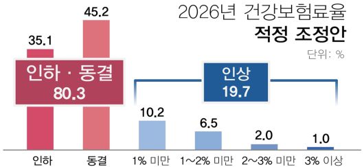내년도 건강보험료율 인상 여부가 오는 28일 열릴 건강보험정책심의위원회에서 결정될 예정인 가운데, 국민 10명 중 8명은 동결 또는 인하를 원한다는 조사 결과가 나왔다.