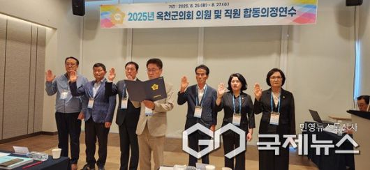 (옥천=국제뉴스) 이재기 기자 = 충북 옥천군의회(의장 추복성)는 8월 25일 경남 거제 소노캄 호텔 회의실에서 의원과 공무원이 함께하는 행동강령 실천 결의대회를 열고 청렴하고 투명한 의정 구현을 다짐했다.
