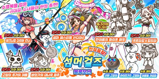 주식회사 포노스는 병맛&귀염 타워디펜스 게임을 대표하는 <냥코대전쟁>에서 기간 한정 이벤트 “고양이의 여름 방학 서바이벌편”과 기간 한정 레어 뽑기 이벤트 ‘섬머 걸즈 블루오션’ 및 주식회사 SELECT BUTTON의 스마트폰 게임 ‘살아남아라! 개복치!’와의 콜라보레이션 이벤트를 2025년 8월 25일 11시부터 개최한다고 밝혔다.