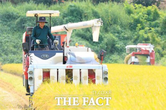 [더팩트ㅣ화성=조수현 기자] 경기 화성시는 25일 정남면 음양리 들녘에서 올해 첫 벼 베기 행사를 열었다.