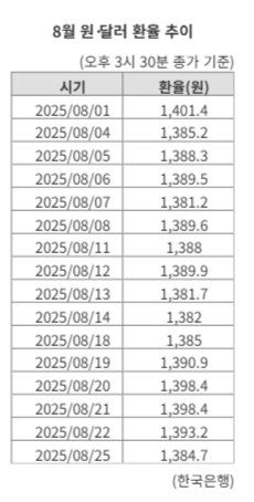 1400원 넘보다 잭슨홀 효과로↓ 9월 금리인하 기대감에 약달러 원화 강세 분위기 기대감 확대 美물가·고용 지표·韓금통위 변수