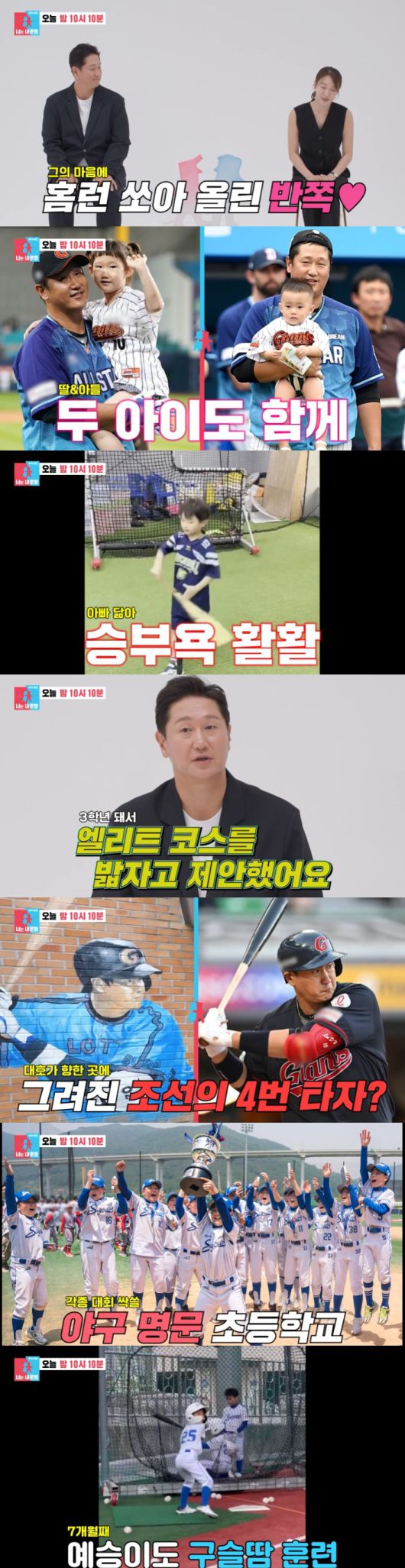아들 예승이도 야구에 빠져 있다고. 이대호는 "지고 오면 울고 승부욕도 있어서 빨리 야구를 시켜야겠다고 했다. 제가 (아들이) 3학년이 되고 엘리트 코스를 밟자고 제안했다"고 전했다.