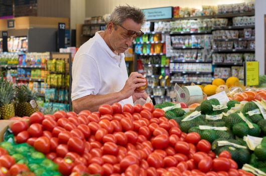 12일 미국 캘리포니아주 로스앤젤레스의 한 식료품점에서 손님이 과일을 살펴보고 있다. 로스앤젤레스/EPA연합뉴스 |