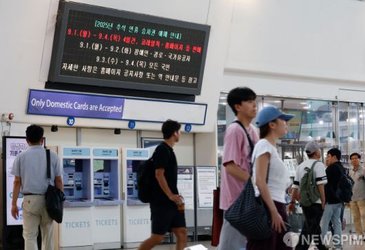 [서울=뉴스핌] 류기찬 기자 = 다가오는 추석을 앞두고 25일 오후 서울역 전광판에 2025년 추석 연휴 승차권 예매 안내가 표시되고 있다. 교통 약자를 위한 사전예매는 9월 1일과 2일 양일간 진행되며 전 국민 대상으로는 9월 3일과 4일 진행된다. 2025.08.25 ryuchan0925@newspim.com