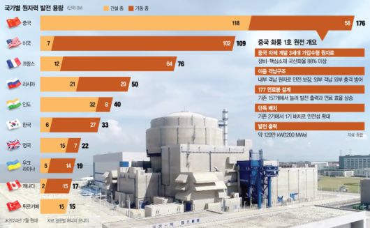 25일 홍콩 사우스차이나모닝포스트(SCMP)는 중국 정부가 2022년 이후 매년 약 10기의 신규 원자로 건설을 승인했으며 2030년에는 미국을 제치고 세계 최대 원전 발전 용량을 확보한 국가가 될 것으로 내다봤다. 세계원자력협회(WNA)에 따르면 지난해 7월 이후 건설을 시작한 최근 10개 프로젝트 중 7개가 중국이고 나머지 3개가 각각 러시아·한국·파키스탄이다.