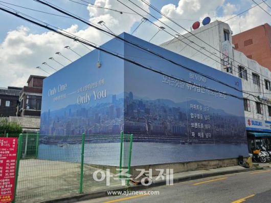 성수1지구에 설치된 GS건설 자이 브랜드 홍보물. [사진=이용우기자] |