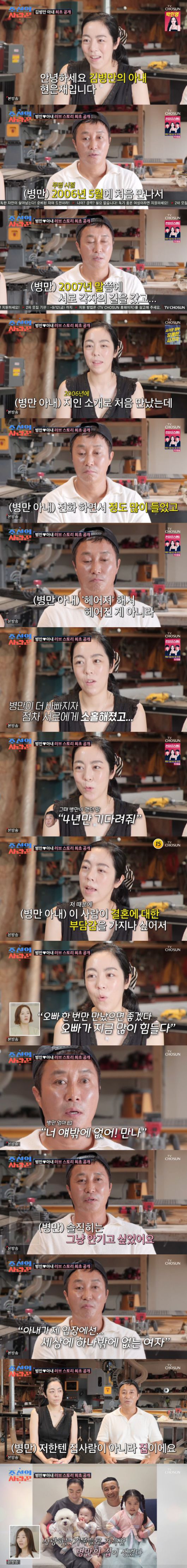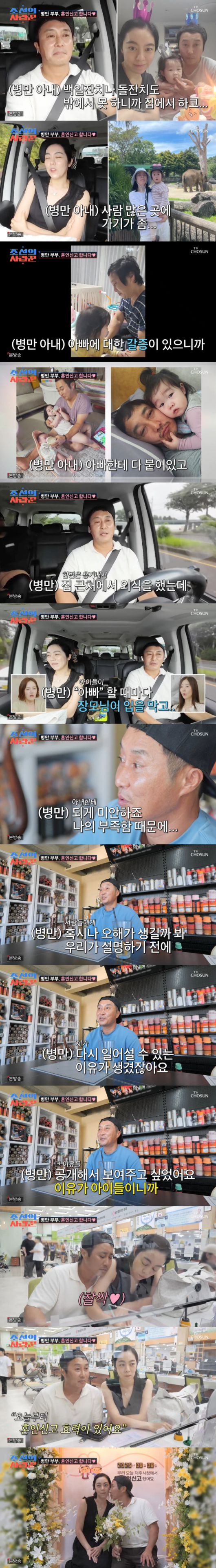 그렇게 각자의 길을 걸으며 긴 세월이 흘렸다. 아내는 "둘 다 제일 많이 힘든 시기가 있었는데 병만 어머님한테 갑자기 전화가 왔다. '잘 사냐'라고 말씀하시더라. 병만 오빠 이야기를 하시면서, '오빠 한번만 만났으면 좋겠다. 오빠가 지금 많이 힘들다'고 하셨다"며 "저도 이혼 소식을 들어서 알고 있었는데, 저도 망설여졌다"고 했다.