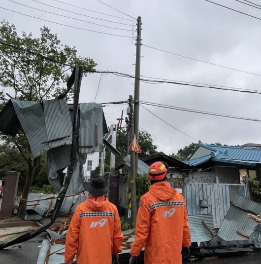 전주시 만성동에는 지붕이 날아갔다거나 익산·군산 지역은 보일러실에 물이 차고 자택으로 물이 들어온다는 침수 신고도 들어와 소방당국이 안전조치에 나섰다.