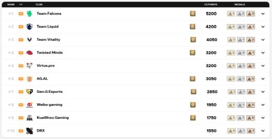 종합 1위는 '오버워치 2' 우승을 바탕으로 '도타2'와 '체스', '배틀그라운드' 등 총 6개 종목에서 3위 안에 드는 고른 성적을 올린 팀 팔콘스(사우디), 2위는 '모바일 레전드 : 뱅뱅'과 'FC 25', 그리고 이번 대회 처음 채택된 '체스' 등 3개 종목 우승을 달성한 팀 리퀴드(네덜란드)가 각각 차지했다.