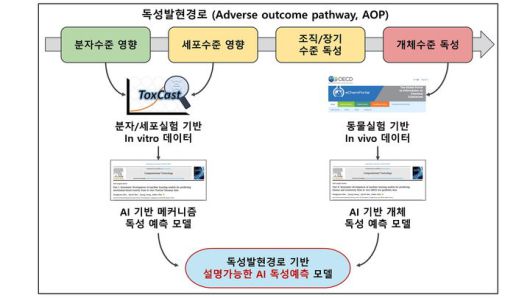 연구팀은 미국 환경보호청(U.S. EPA)이 운영하는 독성 예측 시스템(ToxCast) 데이터베이스의 세포·분자 수준 실험관 내(in vitro) 데이터와 경제협력개발기구(OECD)가 제공하는 글로벌 화학물질 정보 검색 플랫폼(eChemPortal) 데이터베이스의 개체 수준(in vivo) 독성 자료를 기반으로 AI 모델을 구축했다.