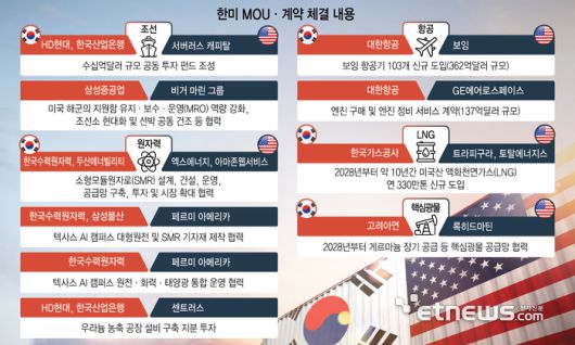 대한항공은 362억달러(50조원) 상당의 미국 보잉의 차세대 고효율 항공기 103대를 추가 도입한다. 이와 함께 GE에어로스페이스와 6억9000만달러(1조원) 가량의 항공기 예비 엔진 구매 및 130억달러(18조2000억원) 규모 엔진 정비 서비스 계약도 추진한다.