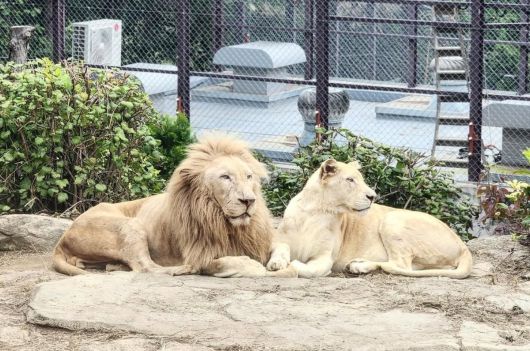 대구 스파밸리 네이처파크 사육장에서 쉬고 있는 백사자 레오와 레아. 스파밸리 인스타그램 캡처 |