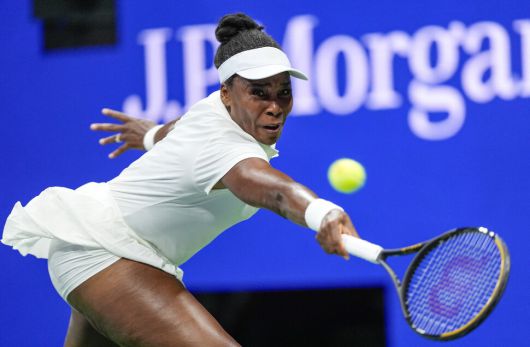 비너스 윌리엄스(미국)가 26일(한국시각) 미국 뉴욕 빌리 진 킹 내셔널 테니스 센터에서 열린 2025 유에스(US)오픈 여자단식 1라운드에서 카롤리나 무호바(체코)에게 샷을 날리고 있다. 뉴욕/이매진이미지스 연합뉴스 |