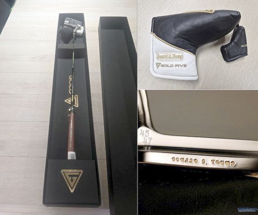 선물로 전달된 제품은 ‘라이언5 투어 플래티넘’ 모델로, 헤드 무게 360g, 길이 34인치, 가죽 그립을 장착한 일자형 퍼터다. 대통령실은 “트럼프 대통령의 체형에 맞춰 제작했으며, 이름과 함께 ‘45·47대 대통령’이라는 문구를 각인했다”고 설명했다.