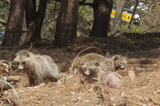 등산객 50대 남성 이모씨가 지난 4월3일 서울양천구 계남근린공원 일대에서 너구리를 찍은 사진. 이씨는 약 한달 전부터 병에 걸린 너구리가 자주 보인다고 했다. /사진=독자 제공. |