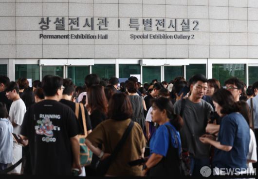 [서울=뉴스핌] 최지환 기자 = 11일 오전 서울 용산구 국립중앙박물관 전시실 입구가 입장을 대기하는 관람객들로 북적이고 있다. 2025.08.11 choipix16@newspim.com |