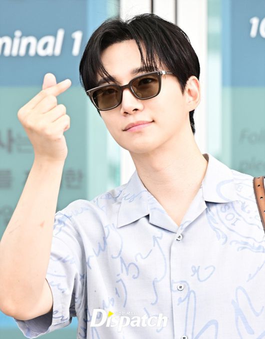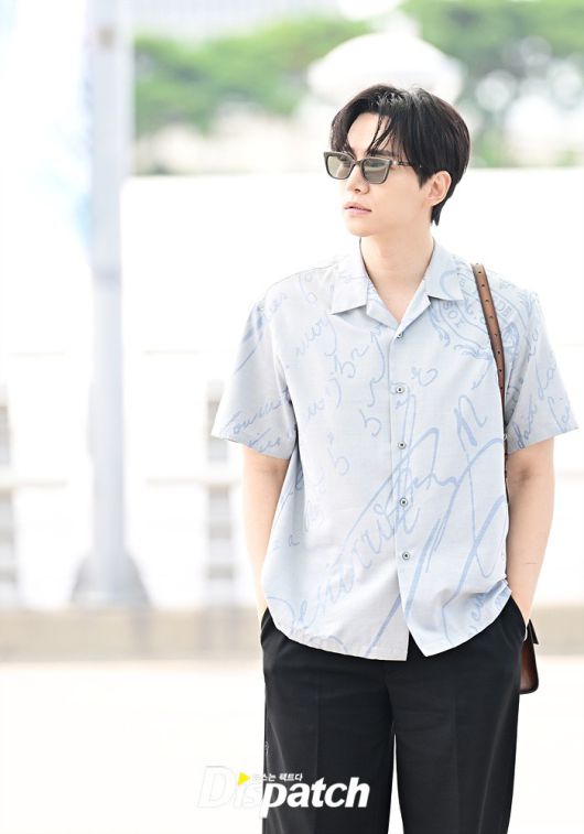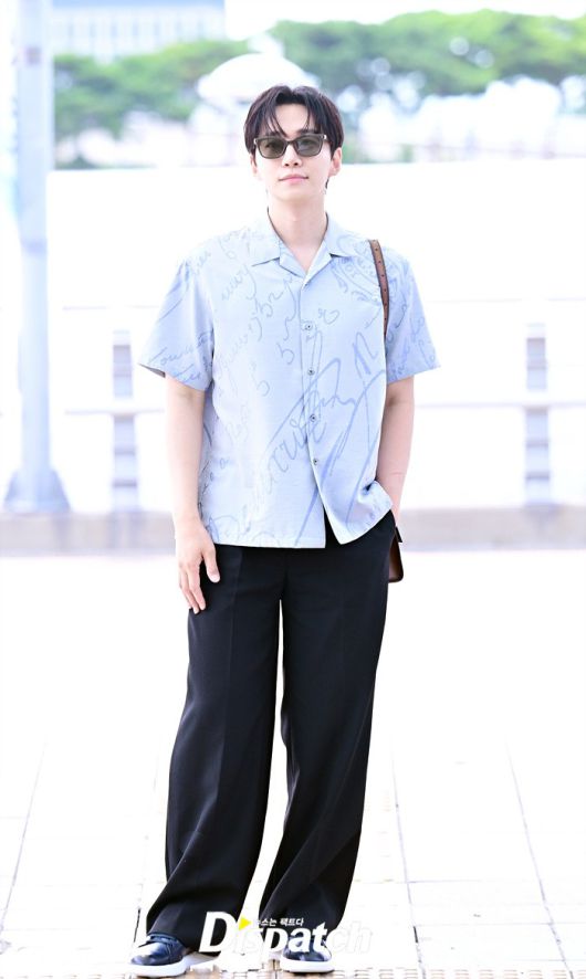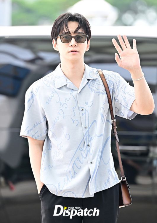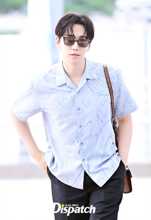 이준호는 블루 컬러의 셔츠와 블랙 슬랙스로 캐주얼한 공항패션을 연출했다. 조각같은 비주얼과 스윗한 미소도 돋보였다.