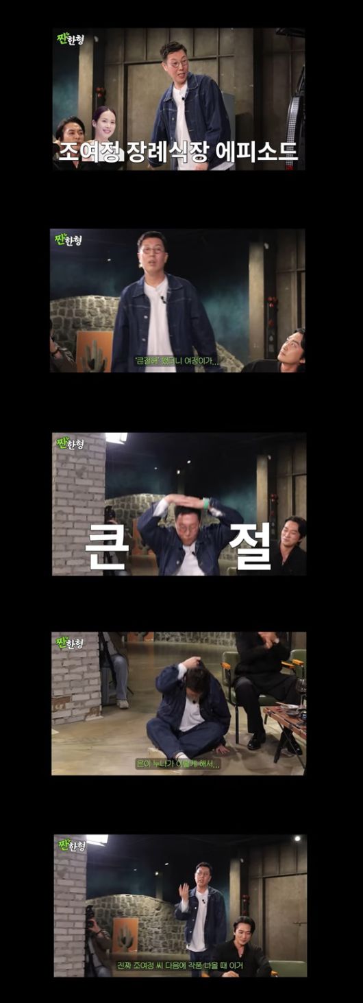 이날 조여정은 개그맨 김영철이 15년 전부터 예능에서 언급해왔던 자신의 장례식장 큰절 실수담을 언급했다.