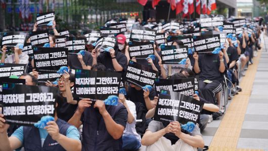 쟁점은 임금과 복지 격차다. 네이버는 2021년부터 지난해까지 전 직원에게 매년 1000만원 상당 자사주를 무상 지급하는 스톡그랜트 제도를 운영했고, 올해는 이 제도를 종료하는 대신 80%를 연봉에 반영했다. 그러나 손자회사 직원들은 본사 대비 20~60% 수준의 성과급만 받았고, 명절 선물 등 복지 혜택에서도 큰 차이가 났다는 것이 노조 측 설명이다.