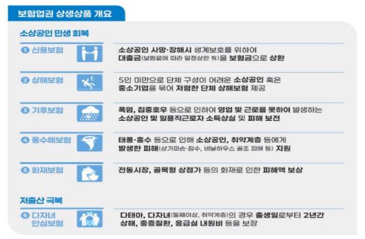 현재 상품안이 마련된 상생상품에 각각 10억원 지원한다고 가정하면 △소상공인 단체 상해보험(1년 보장) 5000~7500명 △소상공인 풍수해보험 3만명(1년 보장) △다자녀 안심보험 8000명(2년 보장) 등이 혜택을 받을 수 있게 된다.