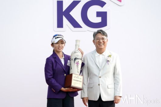 지난해 KG 레이디스 오픈에서 우승한 배소현이 곽재선 KG그룹 회장과 기념 촬영을 하고 있다. |