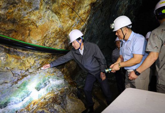 김진태 강원도지사(사진 왼쪽)가 26일 춘천시 사북면에 위치한 형석 광산을 방문, 채굴 현장을 둘러보고 있다. 강원자치도 제공 |